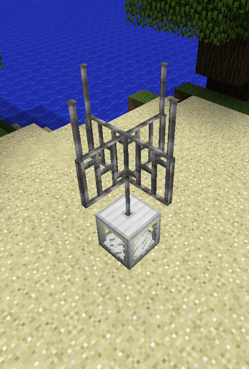 In Dungeon Chests around the world you will find Biome Crystals that “represent” a random biome, using the Biome Radar you can search for biomes in your world. After you place it down you have to put an antenna made out of Iron Bars on top of it (Screenshot 1). Without that antenna it won’t work. If you rightclick the Biome Radar with a Biome Crystal in your hand the Biome Crystal will be inserted into the radar, by right clicking it with an empty hand you can take it out again. With a Biome Crystal in the radar you have to apply a redstone signal to it with something like a lever to start the search. While searching colored smoke will emit from the antenna, once the biome is found a fifth line of smoke will appear in the middle of the antenna. You can now get a position filter of the position the biome was found at by right clicking the biome radar with a piece of paper.