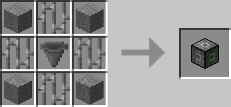Each side of the Inventory Rerouter corresponds to a side of the block in front of it. You can reassign these connections by right-clicking them. When items are inserted into or extracted from the Inventory Rerouter, they will instead be inserted into or extracted from the configured side of the inventory in front of it.