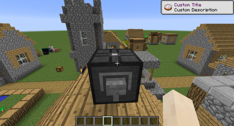 - notify(title, description, iconName, iconMeta)Example: notify(“Custom Title”, “Custom Description”, “minecraft:cake”, 0)