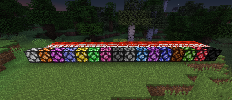 The Rainbow Lamp is a Redstone Lamp that is always on but changes color depending on the signal strength it receives.