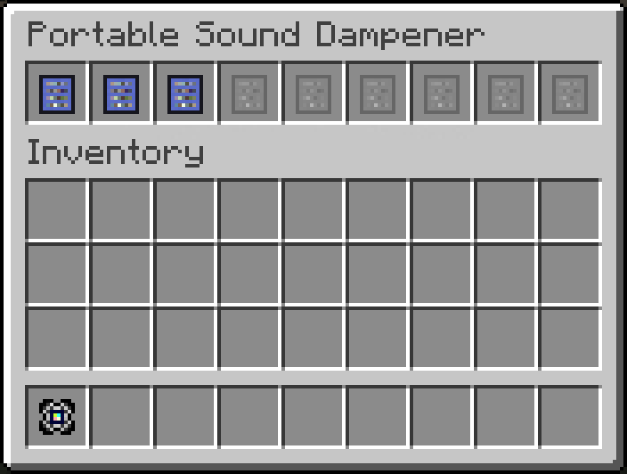 Portable Sound Dampeners will prevent the sounds from the Sound Pattern inside of it from being played for the player that has one in their inventory.
